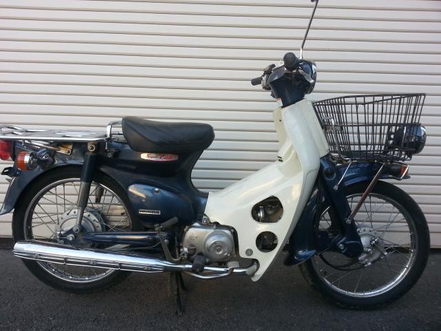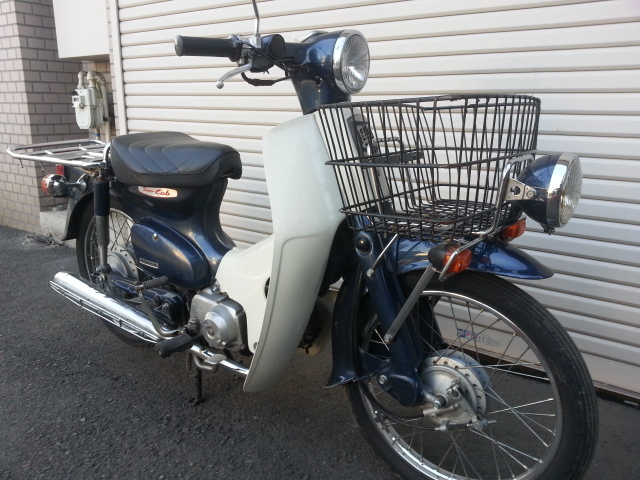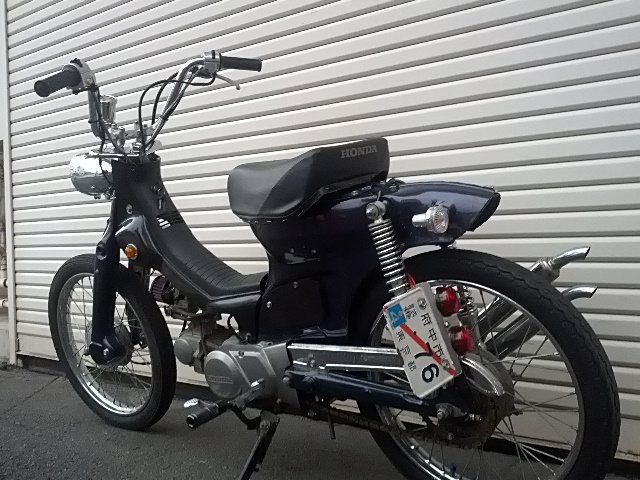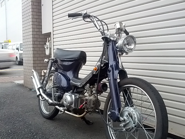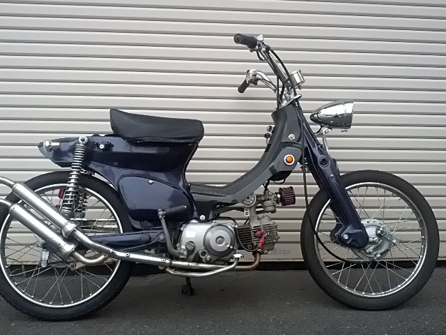 ・メーカー名:ホンダ ・車名: C50 カブ ・2st/4st: 4st ・排気量: 50cc ・色: 紺 ・自走: 可能 ・走行距離: 不明 メーター新品 ・車検/自賠責の有無: なし ・事故歴: なし ・カスタム箇所や装備: 社外メーター アップハンドル仕様 社外ウインカー 前後 サイド テールランプ2灯 サイドナンバーステー 社外リアサス 2本出しマフラー パワーフィルター 社外レッグカウル リアフェンダーカット フロントフェンダーレス メインキーシリンダー移設 ・希望価格:75000 円 ・値引きの可否と条件 :可能