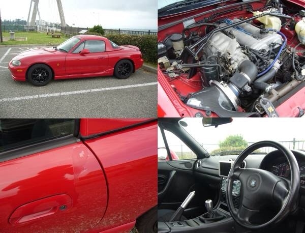 【メーカー】 マツダ 【車名/グレード】 ロードスター 【AT/MT】MT 【排気量】 1800cc 【年式】 2000年 【カラー】 赤 【走行距離】 120000Km 【車検】 26年11月 【事故暦】 無し 【自走】 可能 【自己評価】 10点中/8点 【オーディオ】 カセ/CD/MD ・ CD部が壊れていますが、外部入力端子がついていますので、IPodなどから音楽を流すことができます。 【カーナビ】 DVD・ ○ 【クーラー】 ○ 【パワステ】 ○ 【パワー窓】 ○ 【禁煙車】 ○ 【キーレスリモコン】 ○ 【A