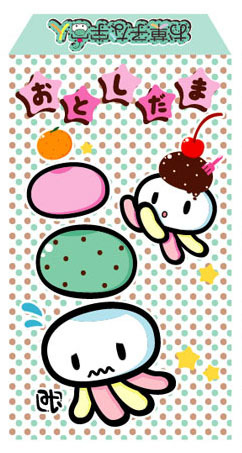 イラストレーターのぽち袋2014に、お菓子な宇宙人のぽち袋が 再び登場します! お年玉袋として使って頂けると、嬉しいです。 よろしくお願いします。(サイトの右下の方に載せて頂いています。) http://pochibukuro.net/ 兎屋みいすけのぽち袋素材ページは、こちらです。 http://u-miisuke.jugem.jp/?eid=7 ※画像右側は、兎屋みいすけのぽち袋データをプリントアウトして、組み立てたものです。