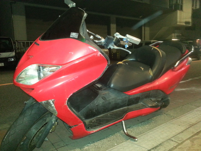 ・メーカー名:ホンダ ・車名: MF08 フォルツァ ・2st/4st: 4st ・排気量: 250cc ・色: 赤 ・自走: 可能 ・走行距離: 17000km ・車検/自賠責の有無:なし ・事故歴: 転倒 ・カスタム箇所や装備: マフラー、ミラー等々 ・希望価格:80000 円 ・値引きの可否と条件 :可能 ・支払方法 ;直接、振込み ・出品地域 東京都府中市 ・発送手配の可否 :全国発送可能 ・名義変更の段取 :話し合いで! <コメント> 転倒したMF08フォルツァです。 外装バッキバキなので低価格にて放出いたします。