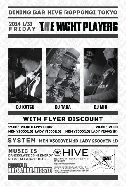 1/31(金)第24回 『 THE NIGHT PLAYERS NIIGHT PLAY GIRLS』を六本木『HIVE』(ハイブ)にて開催します。