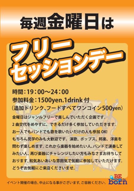 ジャンルにこだわらずに楽しめるオールジャンルのセッションです。