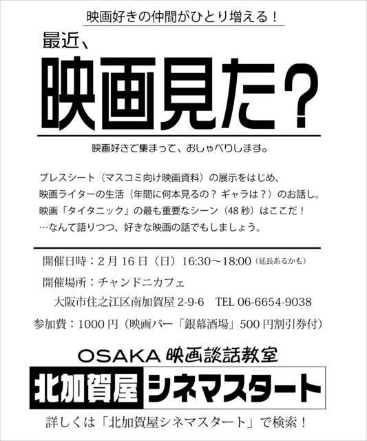 »²²Ã¤¹¤ì¤Ð¡¢Âçºå½»Ç·¹¾¶è¥¨¥ê¥¢¤Î±Ç²è¹¥¤¤ÎÃç´Ö¤¬É¬¤º¤Ç¤¤ë¡ª ========================================= ¤È¤¤¤¦¤ï¤±¤Ç¡¢±Ç²è¹¥¤¤¬½¸¤Þ¤ë±Ç²èÃÌÏöµ¼¼¤òÂçºå¡¦½»Ç·¹¾¶è¤Ç¤Ï¤¸¤á¤Þ¤¹¡£ Âꤷ¤Æ¡¢OSAKA±Ç²èÃÌÏöµ¼¼¡ÖË̲ò첰¥·¥Í¥Þ¥¹¥¿¡¼¥È¡×¡£ ±Ç²è¤¬¹¥¤¤Ç¤â¡¢¿¦¾ì¤ä³Ø¹»¡¢¤Ï¤¿¤Þ¤¿²ÈÄí¤Ç¤â¡¢¤Ê¤«¤Ê¤«¡È»×¤¤¤Ã¤¤ê¡É¸ì¤ë¤³¤È¤Î¤Ê¤¤±Ç²è¤Î´¶ÁÛ¡£ ¤Ç¤â¡¢±Ç²è¹¥¤¤¬½¸¤Þ¤ë¶µ¼¼¤Ê¤é¡¢±óθ¤Ê¤¯¸ì¤ì¤Þ¤¹¡£ ¤Ê¤Ë¤·¤í¡¢¶µ¼¼¤Î»²²Ã¼Ô¤Ï¤ß¤Ê¤µ¤ó¡¢±Ç²è¹¥¤¡£ ÄìÈ´¤±Åª¤ËæÀþ¤·¤Ê¤¬¤é¤Î¤ª¤·¤ã¤Ù¤ê¤â´Ö°ã¤¤¤Ê¤¯³Ú¤·¤¤¤ó¤Ç¤¹¡£ ¤È