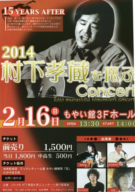 ½éÎø1983ǯ¡×¡ÖÍÙ¤ê»Ò1983ǯ¡×¡Ö¤æ¤¦¤³1982ǯ¡× ¤Ê¤ÉÂç¥Ò¥Ã¥È¤ÇÃΤé¤ì¤Æ¤¤¤ë¡È¼²¼¹§Â¢¡É ·§Ëܸ©¿åËó»Ô¤ÇÀ¸¤Þ¤ì°é¤Ã¤¿ ¥·¥ó¥¬¡¼¥½¥ó¥°¥é¥¤¥¿¡¼¤ò¤¤¤Ä¤Þ¤Ç¤âÅÁ¤¨»Ä¤·¤Æ¤¤¤¯¤¿¤á¤Î¥¤¥Ù¥ó¥È¤Ç¤¹¡£ ³«ºÅÆü»þ¡§2014ǯ£²·î£±£¶Æü¡ÊÆü¡Ë¡¡14¡§00¡Á¥¹¥¿¡¼¥È ¾ì¡¡½ê¡§¿åËó»Ô¡¡¤â¤ä¤¤´Û£³£Æ¥Û¡¼¥ë ¥²¥¹¥È½Ð±é¡§KEINA(¤±¤¤¤Ê)¡¡¥±¥ó¥·¥í¥¦¡¡¥ë¥«¡¡¤µ¤À¤Þ¤µ¤« ¢¡¥Á¥±¥Ã¥È ¡¡Á°Çä¤ê¡¡1,500±ß ¡¡ÅöÆü¡¡¡¡1,800±ß¡¡Ãæ¹âÀ¸¡¡500±ß ¢¡¥Á¥±¥Ã¥ÈÈÎÇä ¡¡¿å¸÷¼ÒËÜŹ¡¦¥Ö¥Ã¥¯¥·¥Æ¥£°ì¿´Æ²¡¦¤â¤ä¤¤´ÛµÊÃã¡Ö²Ö¡×¡¦¤¿¤«¤ä¤Þʸ¶ñŹ ¢¡¤ªÌä¹ç¤»Àè