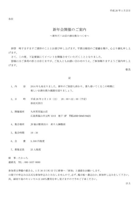 Ê¿À®26ǯ1·îµÈÆü ³Æ°Ì ¿·Ç¯²ñ³«ºÅ¤Î¤´°ÆÆâ ¡Á¿·Ç¯¤À¡ª¤ªÅ¹¤Î¼ò¤ò°û¤ß¤Ä¤¯¤»¡Á ÇÒ·¼¡¡»þ²¼¤Þ¤¹¤Þ¤¹¤´À¶¾Í¤Î¤³¤È¤È¤ª´î¤Ó¿½¤·¾å¤²¤Þ¤¹¡£Ê¿ÁǤϳÊÊ̤Τ´°¦¸Ü¤ò»ò¤ê¡¢¿´¤è¤ê¸æÎ鿽¤·¾å¤²¤Þ¤¹¡£ ¤µ¤Æ¡¢¤³¤ÎÅÙ¡¢²¼µÍ×ÎΤˤƥ¤¥Ù¥ó¥È¤ò³«ºÅ¤µ¤»¤Æ¤¤¤¿¤À¤¯¤³¤È¤È¤Ê¤ê¤Þ¤·¤¿¡£ ³§ÍͤˤϤ´Â¿ÍѤÎÀޤȤϸ¤¸¤Þ¤¹¤¬¡¢¤´Í§¿Í¤È¤â¤ªÍ¶¤¤¹ç¤ï¤»¤Î¤¦¤¨¡¢¤´»²²Ã»ò¤ê¤Þ¤¹¤è¤¦¤´°ÆÆâ¿½¤·¾å¤²¤Þ¤¹¡£ ·É¶ñ µ 1¡¢Æâ ¡¡ ÍÆ¡¡¡¡2014ǯ¤â»Ï¤Þ¤ê¤Þ¤·¤¿¡£¿·Ç¯¤Î¤´°§»¢¤â½ª¤ï¤ê¡¢Íî¤ÁÃ夤¤Æ¤¯¤ë¤³¤Î»þ´ü¤Ë ¡¡¡¡¡¡¡¡¡¡¡¡¡¡¡¡³Ú¤·¤¤¤ª¼ò¤ò°û¤ß¿ÆËÓ¤ò¿Þ¤ê¤Þ¤·