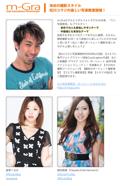 2/2¡¡¤¦¤º¤é¤Õ¤©¤È¡¡m-Gra¼Ì¿¿¶µ¼¼ m-Gra¡ß¤¦¤º¤é¥Õ¥©¥È vol.13 ¡ÖÀäÂФËɬÍפʴðÁäŤ¯¤ê¡¢ ºîÉʤòË᤯¤¿¤á¤Ëɬ¿Ü¤ÎÅ´Èĥƥ¯¥Ë¥Ã¥¯¡÷²°³°¥Ý¡¼¥È¥ì¡¼¥È Â塹ÌÚ¸ø±à¡× ¥â¥Ç¥ë»£±Æ¤ËɬÍפʥ«¥á¥é¥Þ¥ó¤¬ÃΤäƤª¤¯¤Ù¤¤³¤È¡¢ ¥Æ¥¯¥Ë¥Ã¥¯¤òÃæ¿´¤ËŸ³«¤·¤Þ¤¹¡£ ¼Ì¿¿¶µ¼¼¤È»£±Æ²ñ¤Î¥ß¥Ã¥¯¥¹´ë²è¡£ »þ´Ö¤â¤¿¤Ã¤×¤ê³ÆÉô120ʬ¡ª¤´´üÂÔ¤¯¤À¤µ¤¤¡£ ¾Ü¤·¤¯¤Ï¤³¤Á¤é¤«¤é¢¢ http://photo.uzra.jp/event/2014/02/0202a.php