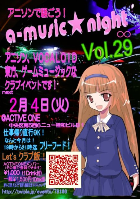 2月4日はa-music☆night! 札幌のアニソンクラブイベントです! 放送中の物からなつかしのアニメまでひたすらアニソンだけかかります! 2月の合言葉はLet's クラブ飯! 今年より、盛り上がりすぎて終電を逃す事案が発生したため 開催時間を変更しております。 18:30〜23:00になります! ACTIVEONEのLINE会員の方は1000円! 一般の方は1500円です。 その場で入会できます もちろんワンドリンク付き! 2月の企画は!!! みんなお腹空かして来てるんです・・・ 何とかなりませんか?の結