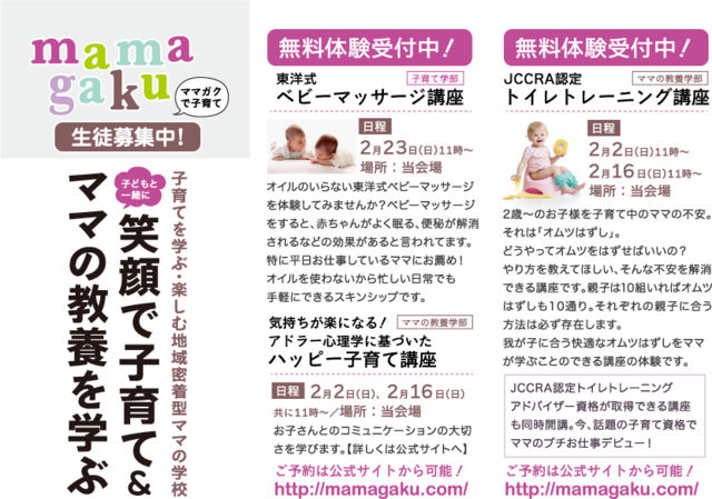 ÍÄÃÕ±àÆþ±à¤ò¹µ¤¨¤¿2ºÐ¡Á3ºÐ¤Î¤ª»ÒÍͤò»Ò°é¤ÆÃæ¤Î¥Þ¥Þ¤¬¡Ö¤É¤¦¤¹¤ì¤Ð¤¤¤¤¤Î¡©¡×¤ÈƬ¤òǺ¤¹²ÝÂê¡¢¤½¤ì¤Ï¡Ö¥ª¥à¥Ä¤Ï¤º¤·¡×¡£JCCRAǧÄê¡Ú¥È¥¤¥ì¥È¥ì¡¼¥Ë¥ó¥°¹ÖºÂ¡Û¤Ç¤Ï¡¢¤É¤¦¤ä¤Ã¤Æ¥ª¥à¥Ä¤ò¤Ï¤º¤»¤Ð¤¤¤¤¤Î¡©¤ä¤êÊý¤ò¶µ¤¨¤Æ¤Û¤·¤¤¡¢¤½¤ó¤ÊÉ԰¤ò²ò¾Ã¤Ç¤¤ë¹ÖºÂ¤Ç¤¹¡£¿Æ»Ò¤Ï10ÁȤ¤¤ì¤Ð¥ª¥à¥Ä¤Ï¤º¤·¤â10Ä̤ꡣ¤½¤ì¤¾¤ì¤Î¿Æ»Ò¤Ë¹ç¤¦ÊýË¡¡¢²æ¤¬»Ò¤Ë¹ç¤¦²÷Ŭ¤Ê¥ª¥à¥Ä¤Ï¤º¤·¤ò¿Æ»Ò¤Ç³Ø¤Ö¤³¤È¤Î¤Ç¤¤ë¹ÖºÂ¤òº£²ó¤ÏÆÃÊ̤˥ȥ¤¥ì¥È¥ì¡¼¥Ë¥ó¥°¤ÎÂè°ì¿Í¼Ô¤Ç¤¢¤ê¡¢5»ù¤ÎÊì¤Ç¤â¤¢¤ë¡¢¤¿¤Þ¤ê¤æ¤¦¤³ÀèÀ¸¤¬¶µ¤¨¤Æ¤¯¤ì¤Þ¤¹¡£ ÆüÄø¡§2·î2Æü¡ÊÆü¡Ë16Æü¡ÊÆü¡Ë¶¦¤Ë11»þ¡Á³«»Ï