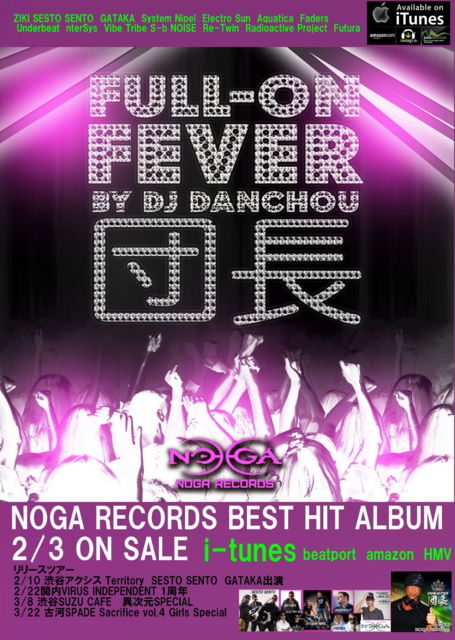 2月3日発売開始 NOGA RECORDS BEST HIT Full-On Fever DJ-danchou 2日目で ダンスチャート アルバム ランクインしました DJ-danchou 29位 ちなみに KARA 4th ALBUM 200位 iTunes Store で danchou で検索できます。 http://mixi.jp/view_bbs.pl?comm_id=656684&id=75415978 12曲のコンピレーションと NON STOP MIX との構成です DJ用としても ドライブや自宅でも最適です iTunes でも amazon でも 試聴 無料なので是非 聞いてください 2/3から1週間の間 ダウン