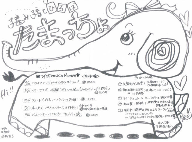 2013年度のチラシUPしました http://k2.fc2.com/cgi-bin/hp.cgi/tamaccho/ QRコードは、上記URLです。使ってくださいね。 2007年10月から始まった「たまっちょ」という非営利の育児サークルです。 私は2008年2月から告知サイト等お手伝いをさせてもらっています。 多磨町、朝日町、紅葉丘、白糸台、若松町あたりの徒歩・自転車圏内のお母さんが多いですが、 遠征されてきてる方もいらっしゃいます。 特に多磨町は文化センターも遠いので、なかなかサークルなども出向きにくいですよね。 子どもメインではなく、「お母さんがメイ