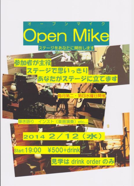12日(水)オープンマイク Juke Joint NASH Presents Open/Start;19:00 ¥500+drink(見学drinkのみ)