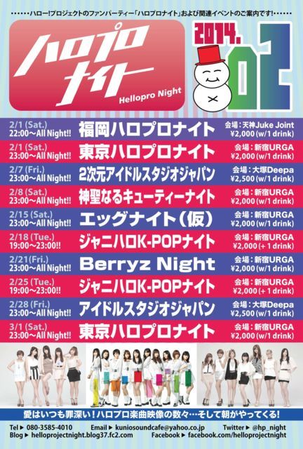 ¡ÈBerryz Night 4th¡É ¡Á¥Ù¥ê¡¼¥º¥¥å¡¼¥È¥¥ã¥ó¥×¡¦¥×¥ì¥¼¥ó¥Ä ¤Ò¤È¤ªÀè¤Î¥ê¥¢¥ëBerryz¹©Ë¼¡ª¡Á Æü»þ¡§2014ǯ2·î21Æü¡Ê¶â¡Ë 23:00¡ÁAll Night!! ²ñ¾ì¡§¿·½ÉURGA¡¡03-5287-3390 ½»½ê¡§¿·½É¶è²ÎÉñ´ìÄ®2-42-16ÂèÆóÂçÂì¥Ó¥ëB1 http://www.urga.net/ ÎÁ¶â¡§ÅöÆü2000±ß¡Ê1¥É¥ê¥ó¥¯ÉÕ¡Ë DJ&VJ¡§¤ª¤¯¤Á¤ã¤ó¡¿²í¥µ¥¤¡¿¤·¤Î¤Ñ¤é¤ó¡¿¥¯¥Ë¥ª and more... ¡ù½Ð±é¼Ô¤Ïͽ¹ð¤Ê¤¯Äɲá¦Êѹ¹¤¹¤ë¾ì¹ç¤¬¤¢¤ê¤Þ¤¹¡£ Berryz¹©Ë¼·ëÀ®10ǯµÇ°¡Ü½Õ¥Ä¥¢¡¼³«»ÏľÁ°¤ò½Ë¤·¤Æ¡¢ Berryz¹©Ë¼¡Ü´ØÏ¢¥æ¥Ë¥Ã¥È³Ú¶Ê¥ª¥ó¥ê¡¼¤Î¥Õ¥¡¥ó¥¤¥Ù¥ó¥È ¡ØBerryz Night¡Ù
