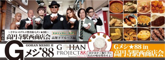 はじめまして! かなりシュールなグルメイベントを杉並区の後援で開催するので その告知です。美味しいもの好きな方、高円寺大好きな方ぜひご参加ください★ ※参加は数量限定前売りチケット制になります。 お早めに応募ください。 ↓チケット販売および詳細はこちら http://gmeshi88-kouenjinishi2014.peatix.com/ 【グルメ捜査イベント「Gメシ★88」 in 高円寺駅西商店会】 2014年2月、ほかほかご飯にぴったりのグルメ捜査イベントを開催! マイ茶碗・マイ箸を持参いただき たった「1500円ぽっきり」で 白飯