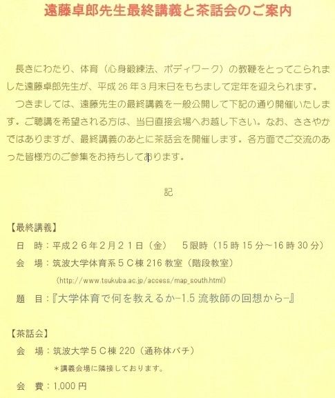 ¿Þ½ñ´Û¾ðÊóÂç³Ø»þÂ夫¤éÂΰé¤ò¶µ¤¨¤³¤é¤ì¤¿±óÆ£ÂîϺÀèÀ¸¡Ê¥¨¥ó¥¿¥¯ÀèÀ¸¡Ë¤¬¡¢Ê¿À®26ǯ3·îËöÆü¤ò¤â¤Ã¤ÆÄêǯ¤ò·Þ¤¨¤é¤ì¤Þ¤¹¡£ ¤Ä¤¤¤Æ¤Ï±óÆ£ÀèÀ¸¤ÎºÇ½ª¹ÖµÁ¤¬°ìÈ̸ø³«¤Ç³«ºÅ¤µ¤ì¤Þ¤¹¡£À¤ÏÿÍÌò¤ÎºäËܾ¼ÍµÀèÀ¸¤Îµö²Ä¤ò夤¤¿¤Î¤Ç¡¢¤³¤Á¤é¤Ë¤´°ÆÆâÃפ·¤Þ¤¹¡£ºÇ½ª¹ÖµÁ¤Î¤¢¤È¤Ë¤ÏÃãÏòñ¤â³«ºÅ¤µ¤ì¤ë¤½¤¦¤Ç¤¹¡£ ³§ÍͤÎÃοÍͧ¿Í¤Ë¤â¤ªÅÁ¤¨¤¤¤¿¤À¤±¤ì¤Ð¹¬¤¤¤Ç¤¹¡£ ¡ÚºÇ½ª¹ÖµÁ¡Û Æü»þ: Ê¿À®26ǯ2·î21Æü(¶â)¡¡15:15-16:30 ²ñ¾ì: ÃÞÇÈÂç³ØÂΰé·Ï5CÅï216¶µ¼¼(³¬Ãʶµ¼¼) http://www.tsukuba.ac.jp/access/map_south.html (N5-N6¤ÎÊÕ¤ê) ¤Ä¤¯¤Ð¥¨¥¯¥¹¥×