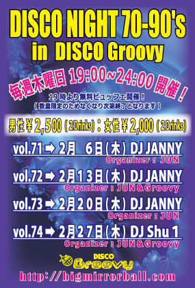 ¡Ú♬¤ª¤Ê¤¸¤ßGroovy¤Î¥Ç¥£¥¹¥³¥Ê¥¤¥È♬¡Û 2014ǯ£²·î¤«¤éËè½µÌÚÍËÆü¤Î³«ºÅ¤È¤Ê¤ê¤Þ¤·¤¿¡ª 70ǯÂå¤ÎSOUL¥ß¥å¡¼¥¸¥Ã¥¯¤«¤éºÇ¿·¤ÎEDM¤Þ¤Ç¥ª¡¼¥ë¥Ò¥Ã¥È¥á¥É¥ì¡¼¡ª ÍÙ¤ì¤ë¶ÊÀ¹¤êÂô»³¤Ç¤ªÂ£¤ê¤·¤Þ¤¹¢ö ¡Ú²»³Ú¡Û ALL GENRE ¡ÊSOUL¡¢Ãݤλҡ¢¥À¥ó¥¯¥é¡¢EURO¡¢HI-NRG¡¢TECHNO¡¢R&B¡¢EDM¡¢etc¡Ä¡Ë ¡Ú³«ºÅ»þ´Ö¡Û 19:00¡Á24:00 ¡ÚÎÁ¶â¡Û ÃËÀ¡§¡ï2,500/2Drinks¡Ü¥Ó¥å¥Ã¥Õ¥§ÉÕ ½÷À¡§¡ï2,000/2Drinks¡Ü¥Ó¥å¥Ã¥Õ¥§ÉÕ ¡Ê¥Ó¥å¥Ã¥Õ¥§¤Ï19»þ¤è¤ê¤´ÍѰդ·¤Þ¤¹¤¬¿ôÎ̸ÂÄê¤Ë¤Ä¤Ìµ¤¯¤Ê¤ê¼¡Â轪λ¤È¤Ê¤ê¤Þ¤¹¡Ë ¡Ú£Ä£Ê¡ÛShu£± ¡Ú¥ª¡¼