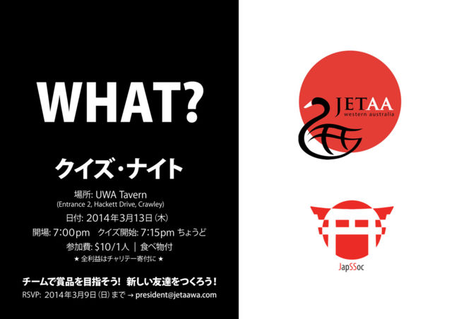 For anyone interested in Japan or learning Japanese for work or to travel... come hang out with like-minded people at JETAA WA's 会WA には日本に興味がある人が集まってきます。是非あなたも遊びに来ませんか?