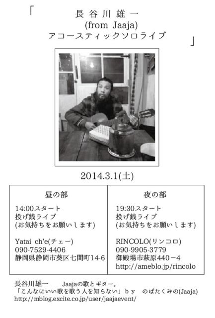 ¡ù3·î1Æü(ÅÚ) ¡ÔĹëÀîͺ°ì(from jaaja)¡Õ ¡Á ¥¢¥³¡¼¥¹¥Æ¥£¥Ã¥¯¥½¥í¥é¥¤¥Ö ¡Á ³«¾ì 19:00 ³«±é 19:30 ¥Á¥ã¡¼¥¸¡§ÅꤲÁ¬(Í×¥ª¡¼¥À¡¼)