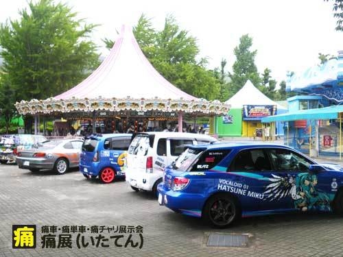 お待たせしました。次回痛展のご案内です。 遊園地内に痛車展示が可能です。 場所:城島高原パーク(大分県別府市) 前回と同じ中央ステージ前広場(ライブはありません) 台数:4輪5台 2輪5台 費用:入園料無料・登録料¥500(配置後、徴収します) 条件 搬入は開園前の9:30。それまでに遊園地南ゲートに集合できること。 搬出は閉園後の17:00。それまで園内にいてもらえること。 優先 基本的に申し込み先着順。上限に達し次第締め切ります。 前回の痛展ぷちに参加していないこと。 (前回と違う絵柄なら可) 同キャラ
