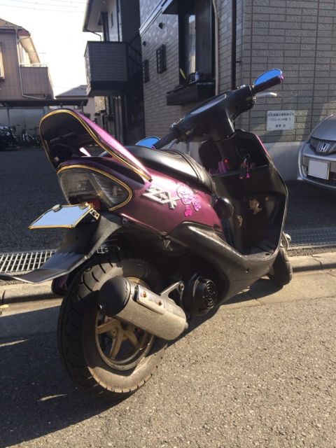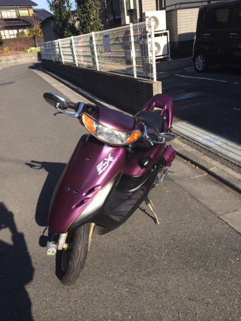 代理出品です ・メーカー名:HONDA ・車名:LIVEDioZX ・年式:不明 ・2st/4st:2st ・排気量:68cc ・色:紫/黒 ラメ ・自走:可能 ・車検/自賠の有無:一年半程 ・事故歴:自分の所に来てからは無し ・キズや不具合の有無 使用してるので多少の傷はありますが 綺麗な方です! 大きな割れなどありません。 ・カスタムポイント ・68ccボア ・金モール ・POHS CDI ・灯火類LED ・ステッカー ・サイドスタンド ・スピーカー2発 ・二段タックロールシート ・クリアテール ・130km/hメーター