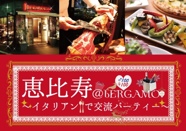 4月19日(土)20時00分〜22時30分 恵比寿駅から徒歩1分♫『bERGAMO』貸切Special Party ☆恵比寿イタリアンレストラン交流パーティー 恵比寿での『☆GW前!!スペシャルパーティー☆』です★☆ 美味しいディナーとお酒を堪能しながら、楽しく交流しましょう〜!!ヽ(*´∀`)ノ