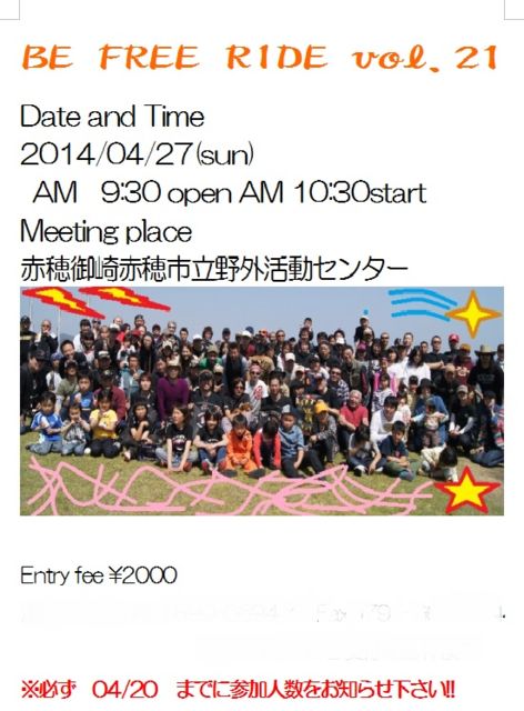 º£Ç¯¤â¡¡BE FREE RIDE ¤ä¤ê¤Þ¤¹¡ª ½é²Æ¤ò¸Æ¤Ó¹þ¤àÀÖÊæ¤Î¥é¥¤¥À¡¼¡õ¥Ð¥¤¥«¡¼¥¤¥Ù¥ó¥È!! ¤Ê¤ó¤À¤«¤ó¤À¤ÇÁ°²ó20²ó¤ò·Þ¤¨¤Þ¤·¤¿ ¤³¤ì¤Þ¤Ç»²²Ã¤·¤Æ¤¯¤ì¤¿Â¿¤¯¤Î³§¤µ¤ó ËÜÅö¤Ë¤¢¤ê¤¬¤È¤¦¤´¤¶¤¤¤Þ¤¹¡ù ¤½¤·¤Æ¡¢¤³¤ì¤«¤é¤â³Ú¤·¤¤¥¤¥Ù¥ó¥È¤Ë¤·¤Æ¹Ô¤¤Þ¤·¤ç¤¦¡ý »²²ÃÈñ¤Ï\2000 »ý¤Ã¤Æ¤¯¤ëʪ¡¡¥Þ¥¤¥³¥Ã¥× ²æ¡¹¥¹¥¿¥Ã¥Õ°ìƱ¡¢ÀÖÊæ¸æºê¤Ç³§¤µ¤ó¤Î ¿¿ô¤Î»²²Ã¤ò¤ªÂÔ¤Á¤·¤Æ¤ª¤ê¤Þ¤¹¡£¤è¤í¤·¤¯