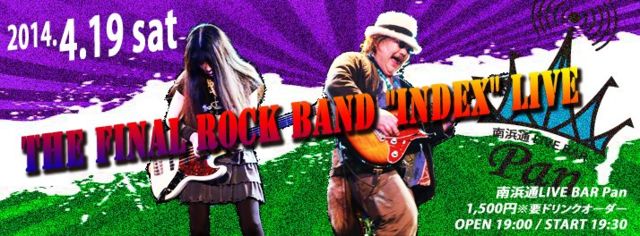 ¿·³ã±óÀ¬¤·¤Þ¤¹¡ªAcoustic ¥ï¥ó¥Þ¥óLive¤Ç¤¹¡£ ¡ÚSOLD OUT¡Û £´·î£±£¹Æü¡ÊÅÚ¡Ë ¿·³ã ÆîÉÍÄÌ LIVE BAR Pan The final rock band "index"Live open 19:00 / start 19:30 ÎÁ¶â 1,500±ß¡¡ ¿·³ã»ÔÃæ±û¶èÀ¾ËÙÄÌ6-885 2F¡ÊÆîÉÍÄ̤ê¡Ë ¡¡TEL 025-378-2230(¼õÉÕ/19:00-24:00)