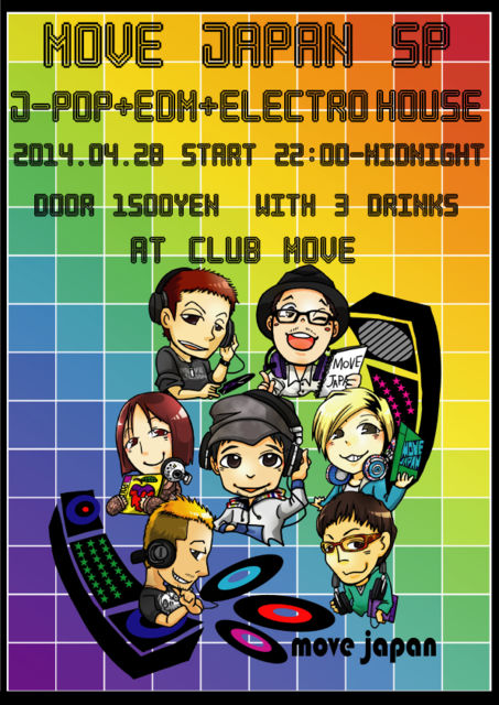 CLUB de JPOP / MOVE JAPAN SP JPOP+EDM+ELECTRO HOUSE 4月28日(月)@ CLUB MOVE START 22:00 〜 midnight DOOR 1500yen(with 3 drink) 1500円で3ドリンク付いた太っ腹企画! 0時までにご入場の方 ¥1500 (With 3drink) 0時以降にご入場の方 ¥1500 (With 2drink) 今回のMOVE JAPANはいつもと違う︎ ダンスミュージックを極めたゲストを迎え、エレクトロハウスとEDMを混じえたガンガン踊れるキレキレJ-POPを、ナイスビートでお届けします☆ CLUB大好きな方も、CLUB初めての方も、間違い