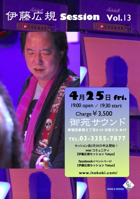 今回で13回目の開催となるお馴染みの伊藤広規セッション! 4/25(金)に御苑サウンド(新宿)での開催となります。 そして今回のお題は、山下達郎の銘アルバムであり、伊藤広規・青山純が世に出るきっかけとなった「RIDE ON TIME」です。 全曲を、アルバムの曲順にセッションしっます。 ※2003年2月に発売されたリマスター盤になります 追加情報) ・元CASIOPEA(初代)、佐藤博さんのハイ・タイムスで鍵盤を弾いていらした小池秀彦さんにご参加頂きます。 ・広規さんの朋友のPAの神様である岡田辰夫さんが、新しく導入したPA&RECを持ち込み