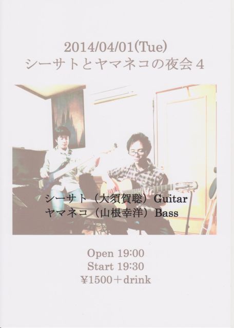 £±Æü¡Ê²Ð¡ËJazz ¥·¡¼¥µ¥È¤È¥ä¥Þ¥Í¥³¤ÎÌë²ñ4 ¥·¡¼¥µ¥È(Âç¿Ü²ìÁï)(G) ¥ä¥Þ¥Í¥³(»³º¬¹¬ÍÎ)(B) Open;19:30 Start;20:00 ¡ï1500+drink