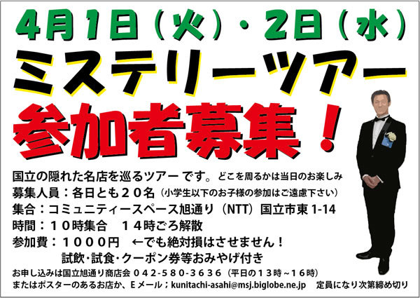 ¹ñΩ¤Î±£¤ì¤¿Ì¾Å¹¤ò½ä¤ë¥Ä¥¢¡¼¤Ç¤¹¡£ Ê罸¿Í°÷¡§£´·î£±Æü¡Ê²Ð¡Ë¡¦£²Æü¡Ê¿å¡Ë¡¡³ÆÆü¤È¤â£²£°Ì¾¡Ê¾®³ØÀ¸°Ê²¼¤Î¤ª»ÒÍͤλ²²Ã¤Ï¤´±óθ²¼¤µ¤¤¡Ë ½¸¹ç¾ì½ê¡§¥³¥ß¥å¥Ë¥Æ¥£¡¼¥¹¥Ú¡¼¥¹°°Ä̤ê¡Êµì£Î£Ô£Ô¡Ë¡¡¹ñΩ»ÔÅ죱¡Ý£±£´ »þ´Ö¡§¡¡¡¡¡¡£±£°»þ½¸¹ç¡¡£±£´»þ¤´¤í²ò»¶ »²²ÃÈñ¡§¡¡¡¡°ì¿Í£±£°£°£°±ß¡¡¡Ê»¤Ï¤µ¤»¤Þ¤»¤ó¡£»î°û¡¦»î¿©¡¦¥¯¡¼¥Ý¥ó·ôÅù¤ª¤ß¤ä¤²ÉÕ¤¡Ë ¤ª¿½¤·¹þ¤ß¤Ï¡¡£°£´£²¡Ý£µ£¸£°¡Ý£³£¶£³£¶¡¡¹ñΩ°°Ä̤꾦ʲñ¡ÊÊ¿Æü¤Î£±£³»þ¡Á£±£¶»þ¡Ë ¤Þ¤¿¤Ï¥Ý¥¹¥¿¡¼¤Î¤¢¤ëʤ«¡¢¥á¡¼¥ë¤Ç¡¡kunitachi-asahi@msj.biglobe.ne.jp Äê°÷¤Ë¤Ê¤ê¼¡ÂèÄù¤áÀÚ¤ê¤Þ¤¹¡£
