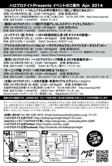 ¤ªÀ¤ÏäˤʤäƤª¤ê¤Þ¤¹¡£ ËèÅÙÁÔÀä¤ÊÀ¹¤ê¾å¤¬¤ê¤ò¸«¤»¤ëÅìµþ³«ºÅ¡¢ ¤ª²Ö¸«¥·¡¼¥º¥ó¤Ë¤ÆËܵ¤¤ÎÅÚÍËÆü³«ºÅ¤Î¤ªÃΤ餻¤Ç¤¹¡£ ÆÃ½¸¤ÏÀ§Èó¤È¤â²¼µËÜʸ»²¾È¤Î¹ë²Ú¤ÊÆâÍÆ¤Ç¤ªÆÏ¤±¤Ç¤¹¡£ ¤Ï¤¸¤á¤Þ¤·¤Æ¡¢¤ª°ì¿Í¤ÎÊý¡¢¤ªµ×¤·¤Ö¤ê¤ÎÊý¤âÂç´¿·Þ¤Ç¤¹¤Î¤Ç¡¢ À§Èó¤È¤â¤ªµ¤·Ú¤Ë¤ªÉÕ¤¹ç¤¤Äº¤±¤ì¤Ð¹¬¤¤¤Ç¤¹¡ª ¡ÈÅìµþ¥Ï¥í¥×¥í¥Ê¥¤¥È¡É ¡Á1²¯£³ÀéËüÁí¥¢¥ì¥³¥ì¥ß¥¹¥Æ¥ê¡¼¥Ê¥¤¥È¤·¤Æ¤ß¤¿¡ª¡Á Æü»þ¡§2014ǯ4·î5Æü¡ÊÅÚ¡Ë 23:00¡ÁAll Night!! ²ñ¾ì¡§¿·½ÉURGA¡¡03-5287-3390 ½»½ê¡§¿·½É¶è²ÎÉñ´ìÄ®2-42-16ÂèÆóÂçÂì¥Ó¥ëB1 http://www.urga.net/ ÎÁ¶â¡§