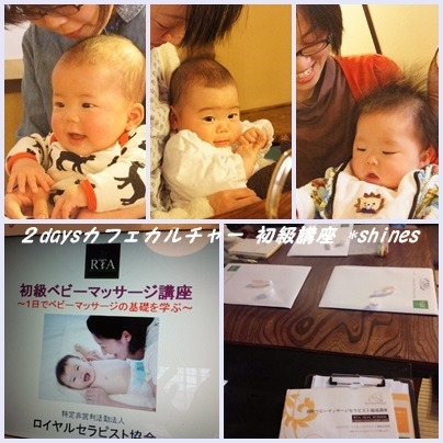 こんにちは。 人気の和カフェでゆったり学べる 2daysカフェカルチャー『初級ベビーマッサージ講座』のご案内です。 〜ゆったりおいしくベビマを学ぶshinesの初級講座〜 (3月は満席となりました。 OPENからたくさんのお問い合わせ・お申込みありがとうございます。) 4月開催のご案内です。 日程:4月17日&4月24日 時間:10:00〜 場所:なんてんカフェ(有楽町・副都心線要町駅より徒歩1分の和カフェ) 受講料:2回で17000円 (初級講座RTA共通) ◇初回時にお支払い