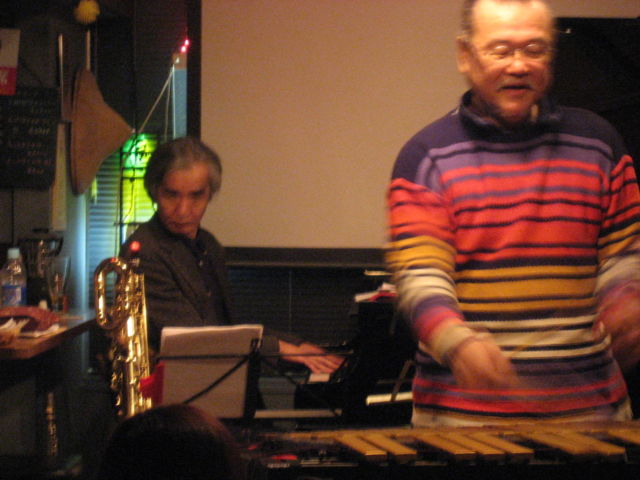 40周年記念ライブPART5です。 浜田均(Vib)さんと佐藤達哉(Ts)さんのデュオです。 浜田さんは、いつもは、カルテットやクインテットで、若いミュージシャンとファンキーな演奏を聴かせてくれています。 昨年から、還暦を機にライブを精力的に行って、佐藤さんとのデュオは、なかでも好評を博しています。 今回、h.s.trashでも、演奏して下さることになりました。 佐藤さんは、h.s.trash初出演です。名門早稲田ジャズ研出身。 日野皓正、日野元彦、ジョージ川口等、名だたるミュージシャンと、国内のみならず、海外ツアーも数多く参