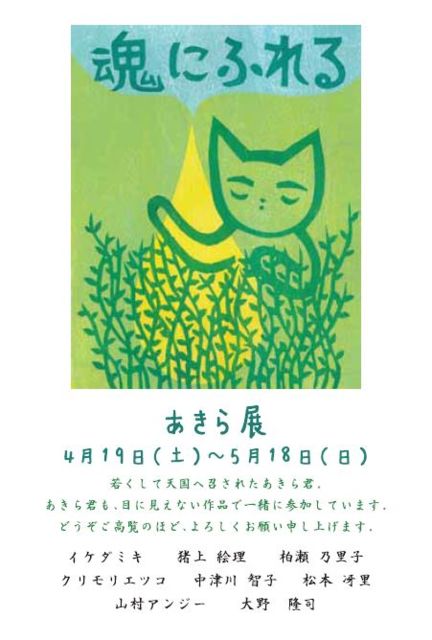 柏市の大洞院というお寺さんのギャラリーで 『あきら展』という展覧会が開催されます。 そのオープニングイベント&パーティが本日午後2時からあります! 展覧会メンバーの大野隆司さんにお誘いいただき ワントリックポニーも二曲歌わせていただきます。 よろしくお願いいたします♪ 『あきら展』 ・柏「大洞院」 http://www.daitoin.net/