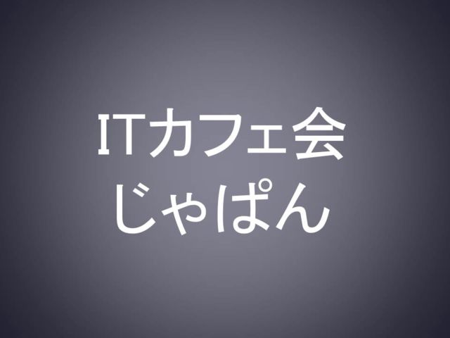 ITカフェ会じゃぱん 2014年4月23日開催 【イベント名】ITカフェ会じゃぱん 【開催日】2014年4月23日 (水) 20:00-22:00 【当日のスケジュール】 19:30-19:40 集合 19:40-20:00 移動 20:00-20:10 自己紹介 20:10-21:00 歓談 ※途中参加可能 【開催地】JR渋谷駅付近のカフェ、レストラン 【定員】10名 【費用】参加費 500円 + 飲食代実費※ ※目安:1,000円 - 2,000円 程度 【持ち物】名刺 【参加資格】 ITに関わる社会人,学生 ※初参加時20歳から40歳までの方 41歳以上の方は主催者、