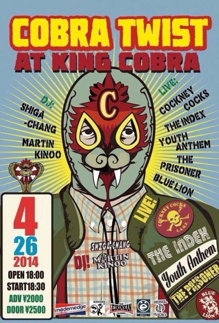 µ×¡¹¤ÎÂçºå¤Ç COCKNEY COCKS¥é¥¤¥Ö¡ª ½¸¹ç︎ Æü»þ: 2014/04/26(ÅÚÍËÆü) ¾ì½ê: KINGCOBRA ½Ð±é: COCKNY COCKS THE INDEX YOUTH ANTHEM THE PRISONER BLUE LION DJ:SHIGA-CHANG ADV/2000±ß DOOR/2500±ß OPEN/START :18:00/18:30
