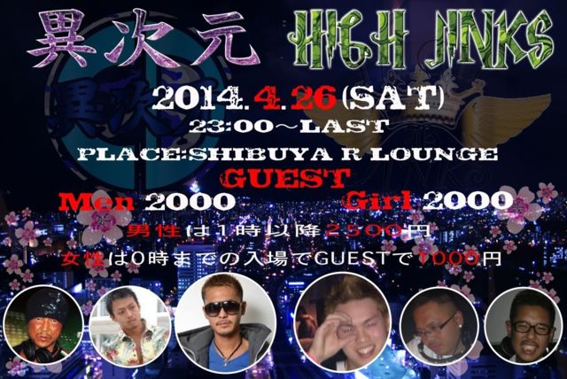 4/26(ÅÚ)½ÂëR-Lounge°Û¼¡¸µ¡ßHIGH JINKS 4·îÃÂÀ¸Æü¤Î¿Í¤ÏÆþ¾ì̵ÎÁ ½÷À¤Ï0»þ¤Þ¤Ç1000±ß DAIKI¡¡BIRTHDAY ¡õTAKANE¡õKOHEI BIRTHDAY ¥¹¥Ú¥·¥ã¥ë¥³¥é¥Ü¥ì¡¼¥·¥ç¥ó ¢£OPEN ¨±22:00¡ÁLAST ¼õÉÕ¤ÇÃÄĹ¤Î¥²¥¹¥È¤È ¸À¤Ã¤ÆÄº¤±¤ì¤Ð ¥Ç¥£¥¹¥«¥¦¥ó¥ÈÎÁ¶â¤Ë¤Ê¤ê¤Þ¤¹ Men's 2000±ß Girl's 2000±ß ½÷À¤Ï0»þ¤Þ¤Ç1000±ß 4·îÃÂÀ¸Æü¤Î¿Í¤ÏÆþ¾ì̵ÎÁ ÃËÀ¤Ï1»þ°Ê¹ß+500±ß ¢¦Guest DJ¢¦ ¨±ELI(²»µÁ) ¢¦RESIDENT¢¦ ¨±¹ä(ÂΩ¶¸/KINGDOM/HIGH JINKS) ¨±¹âÌÚ¥µ¥¤