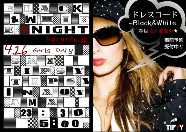 ¡Ú¤ªÆÀ¤Ê»öÁ°Í½Ìó¤â¼õÉÕÃæ!!!¡Û Ëè·î300̾¤Îư°÷¿ô¤ò¸Ø¤ëNEW Generation¥¤¥Ù¥ó¥ÈTIPSY!! º£·î¤Ï¥É¥ì¥¹¥³¡¼¥É¡á¡ÖBlack&White¡× ¥â¥Î¥È¡¼¥ó¥³¡¼¥Ç¤Ç¥¹¥¿¥¤¥ê¥Ã¥·¥å¤ÊGirls Party¢ö £´·î£²£¶Æü(ÅÚ) TIPSY¡ØBlack&White night¡Ù @ɽ»²Æ»ever OPEN 23:30 - 5:00 ¢¡¥¤¥Ù¥ó¥È¾ÜºÙ¡ÊPC¥µ¥¤¥È¡Ë¢Íhttp://tipsy.chu.jp/night/next.html ¢¡·ÈÂÓ¥µ¥¤¥È¢Íhttp://tipsy.chu.jp/m/ ¢¡¥¹¥Þ¥Õ¥©¥µ¥¤¥È¢Íhttp://tipsy.chu.jp/sp/ ¤Ç¤¤ë¤À¤± ¡Ö¹õ¤ÈÇò¡× ¤Ç¥³¡¼¥Ç¥£¥Í¡¼¥È¤·¤¿¥â¥Î¥È¡¼¥ó¥Õ¥¡¥Ã¥·¥ç¥ó¤Ç¤ª±Û¤·¤¯¤À¤µ¤¤!! ¤Þ¤¿¡¢¡ÖÎø¿ÍÊç½¸Ãæ¡×¤ä¡ÖÏä·