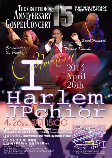 ¥´¥¹¥Ú¥ë¥³¥ó¥µ¡¼¥È¤¬¤¢¤ê¤Þ¤¹¡£ Âçºå¤Ç³èư¤¹¤ë Harlem JP Choir ¤Î£±£µ¼þǯ¥³¥ó¥µ¡¼¥È¤Ç¤¹ NY¡¢¥·¥«¥´¤«¤é¥²¥¹¥È¤ò¾·¤¤¤Æ¤Î¥³¥ó¥µ¡¼¥È À§È󤪱ۤ·²¼¤µ¤¤¡£