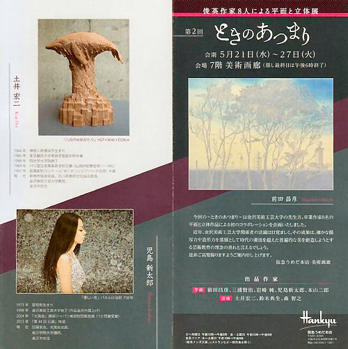 『第2回ときのあつまり』 会期:2014年5月21日(水)〜27日(火) 会場:阪急うめだ本店7階美術画廊 出品作家: 絵画:前田昌彦(国画会)、三浦賢治(独立展)、岩崎純(行動展)、児島新太郎(光風会)、本山二郎(光風会) 彫刻:土井宏二(新制作協会)、鈴木典生、森智之(新制作協会)