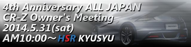 詳細は専用サイトを設置しています。 ご参照くださいませ。 http://crzowners.web.fc2.com/index.html 協賛企業もあります。 HSRでの開催ですので、体験走行やスポーツ走行まで、 オーナー同士の交流と走る楽しさを目的として開催します。 CR-Zオーナーの CR-Zオーナーによる 全国ミーティング 日本の端っこでの開催ですが、西日本を中心に参加者が集まってます。 カスタムしていない方も大歓迎です。 逆にカスタムしてない方にこそ、来ていただきたい。