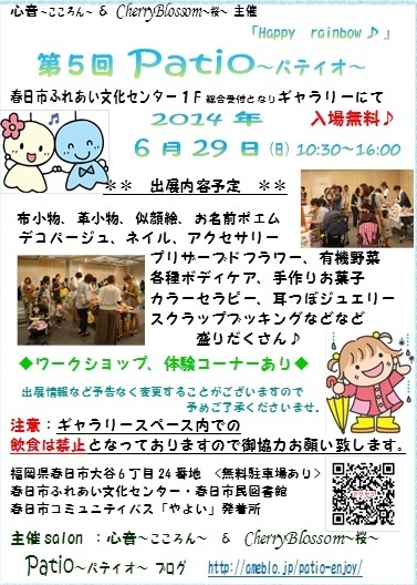 ¡ÖÂ裵²ó¡¡£Ð£á£ô£é£ï¡ÁŽÊŽßŽÃލ޵¡Á¡×¤Î¤ªÃΤ餻(^^¢ö Á°²ó¤Ë°ú¤Â³¤¡¢¤ªÌ䤤¹ç¤ï¤»¤â¿¤¯ ³Ú¤·¤ß¤Ë¤·¤Æ¤¯¤À¤µ¤Ã¤Æ¤ëPatio¡Á¥Ñ¥Æ¥£¥ª¡Á ¡ù ¼¡²óPatio¡Á¥Ñ¥Æ¥£¥ª¡Á ¤Î³«ºÅ¤¬·èÄê¤Ç¤¹¡ù º£²ó¤â³Ú¤·¤¤Ê·°Ïµ¤¤Ë¤Ê¤ë¤è¤¦¤Ë¿´³Ý¤±¤¿¤¤¤È»×¤¤¤Þ¤¹(*^_^*) ¾Ü¤·¤¯¤Ï¥Ñ¥Æ¥£¥ª¤Î¥Ö¥í¥°¤ò¤´Í÷¤¯¤À¤µ¤¤¤Í¡ù http://ameblo.jp/patio-enjoy/ ¡ù¤ª¤¦¤Á£Ó£á£ì£ï£î±þ±ç¥¤¥Ù¥ó¥È¡ù Â裵²ó£Ð£á£ô£é£ï¡ÁŽÊŽßŽÃލ޵¡Á¡¡³«ºÅ·èÄꡪ £²£°£±£´Ç¯ £°£¶·î£²£¹Æü¡ÊÆü¡Ë¡¡£±£°¡§£³£°¡Á£±£¶¡§£°£°¡¡ ½ÕÆü»Ô¤Õ¤ì¤¢¤¤Ê¸²½¥»¥ó¥¿¡¼£±F¡¡¥®¥ã¥é¥ê¡¼ Âè5²ó