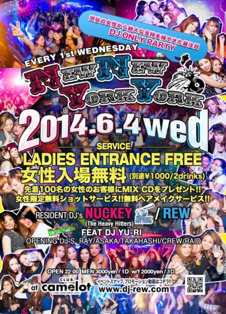 6.4(水)渋谷camelot女性入場無料!!渋谷の平日を代表する動員と水準のDJ ONLY PARTY"NEW YORK NEW YORK"毎回400人規模で大盛り上がり!!