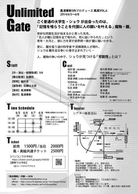 管理人様、貴重なスペースをお借りします。 6月に風凛華斬が母体となってプロデュースする「風真」の舞台本番があります。 風真とは風凛華斬の劇団員が中心となって行うプロデュース公演です。 舞台経験の有無や稽古への参加状況に関わらず「舞台に立ちたいという意思がある方は『全員出演させる!!』」をコンセプトにしています。 普段見ている側方々や、初舞台の方、社会人の方なども沢山参加されています。 そんな方々を劇団員や、主旨に納得してくれた経験者の方々の手厚いフォローで舞台に立たせる・・・一見無茶なようですが、そん