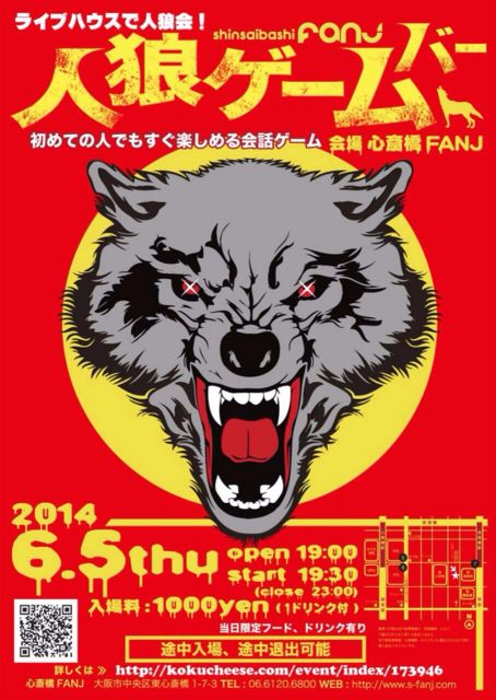 ライブハウスを借りて平日の晩に人狼します! ------------------------------------------- こちらは告知のみです 募集は下記で行っています http://mixi.jp/view_event.pl?comm_id=6161596&id=76259921 http://kokucheese.com/event/index/173946/ ------------------------------------------- 対面の人狼ゲームを楽しむイベントです。 人狼ゲームは「はじめての方」もすぐに遊べ、かつ奥も深いゲームです。 人狼に興味がある方、既に人狼を知っている方も一緒に遊びましょう。 今回はBARとかカフェとか公民館とかありきたりな場