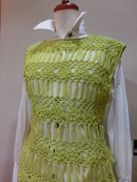 「目黒ジェオグラフィカ・ニットワークショップ」 目黒通り沿いにはたくさんの素敵な家具屋さんやアンティークショップが並びます。その中でも、ひときわ目立つ建物が「ジェオグラフィカ」さん http://www.geographica.jp/index.html 質の高いアンティーク商品が多数揃います。 こちらジェオグラフィカにて、ニットウェアのワークショップ「ニットサロン」を開催しております。 〇パイナップル柄チュニック かぎ針4/0号使用 キット代…3564円(税込) 〇ヘアピンレースの夏つけ襟 ヘアピン