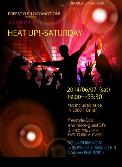 ¥Õ¥ê¥¹¥¿¥Ê¥¤¥È HEAT UP!-SATURDAY ÆüÄø¡§2014/06/07 (Sat) 19:00¡Á23:30 ÎÁ¶â¡§\2000(1DrinkÉÕ) ¡¡¡¡¡¡¡¡freestyle-DJ's & Gest-DJ's ¾ì½ê¡§SOUND DINING M(µþ¥»¥éDome¤Î200mÀ¾Â¦) 2¼¡¡Á4¼¡¤Þ¤Ç »ÔÈÎVIDEO.»ÔÈÎDVD.²»³ÚCDÉÕ°DVD ¤Î¼ýÏ¿¶Ê¤ò¥á¥¤¥ó¤ËÁª¶ÊͽÄê ¤´Íè¾ì¤ÎÊý¤Î¾õ¶·¼¡Âè¤Ç 4¼¡°Ê¹ß¡¢½à¿·¶Ê.¿·¶Ê¤â³Ý¤±¤Þ¤¹¡£ SOUNDDINING M Âçºå»Ô À¾¶è ¶å¾òÆî 2ÃúÌÜ18-4 TEL 06-6582-5280 Åż֡§ºå¿À¤Ê¤ó¤ÐÀþ¡¡¶å¾ò±Ø£²Èֽиý¤«¤éÌó100M¡¡¡¡ ¡¡¡¡¡¡Ãϲ¼Å´Ãæ±ûÀþ¡¡¶å¾ò±Ø£¶Èֽиý¤«¤éÅÌÊâÌó5ʬ ΢Ä̤ê¤ËÍ­¤ê¤Þ¤¹¤Î¤Ç¡¢»öÁ°
