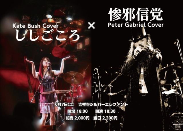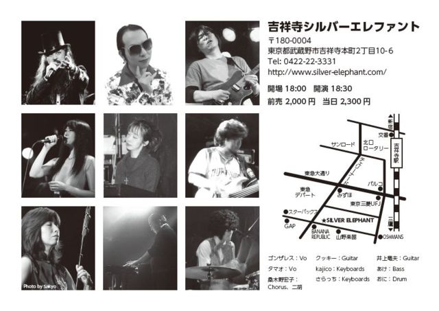 ËܲȤΥí¥ó¥É¥ó¸ø±é¤âÀ¹¤ê¾å¤¬¤Ã¤Æ¤ª¤ê¤Þ¤¹¤¬¡¢¥«¥Ð¡¼¥Ð¥ó¥É¤È¤·¤Æ¤Ï´ò¤·¤¤¸Â¤ê¤Ç¤¹¡ª¡ª ¤É¤ó¤Ê¶Ê¤ò¤É¤ó¤Ê±é½Ð¤Ç¤ä¤ë¤Î¤Ç¤·¤ç¤¦¤Í¡£ Åìµþ¤ÎÊÒ¶ù¤Ç¤â¡¢¹±Îã¤È¤Ê¤Ã¤Æ¤Þ¤¤¤ê¤Þ¤·¤¿¡Ö¤·¤·¤´¤³¤í¡×¤Î¥é¥¤¥Ö¤ò¹Ô¤Ê¤¤¤Þ¤¹¡£ ¡úKate Bush Cover¡Ö¤·¤·¤´¤³¤í¡×¡õPeter Gabriel¡Ö»´¼Ù¿®Åޡץ饤¥Ö¡ú £¶·î£·Æü(ÅÚ)µÈ¾Í»û¥·¥ë¥Ð¡¼¥¨¥ì¥Õ¥¡¥ó¥È http://www.silver-elephant.com/ Open 18:00¡¡ Start 18:30 Á°Çä¡¡\2,000¡¡ÅöÆü¡¡\2,300 Vo.¡¡¡¡¥¿¥Þ¥ª Vo.¡¡¡¡¥´¥ó¥¶¥ì¥¹ Cho.&Æó¸Õ¡¡·¬ÌÚÌ»Ò Guitar¡¡¥¯¥Ã¥¡¼ Guitar¡¡°æ¾åεÉ× Keyboards¡¡