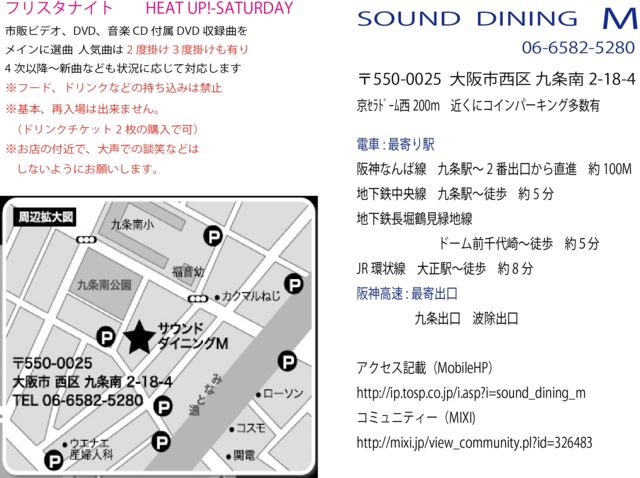 ¿¹¤µ¤ó¤Î¤´¶¨ÎϤΤè¤ê¡¢EUROBEAT¥¤¥Ù¥ó¥È¤ò³«ºÅ¤·¤Þ¤¹¡£ ¥³¥ß¥å¥Ë¥Æ¥£¥á¥ó¥Ð¡¼³§ÍÍ¡¢¤è¤í¤·¤¯¤ª´ê¤¤¤·¤Þ¤¹¡£ ¥Õ¥ê¥¹¥¿¥Ê¥¤¥È HEAT UP!-SATURDAY ÆüÄø¡§2014/06/07 (Sat) 19:00¡Á23:30 ÎÁ¶â¡§\2000(1DrinkÉÕ) ¡¡¡¡¡¡¡¡freestyle-DJ's & Gest-DJ's 2¼¡¡Á4¼¡¤Þ¤Ç »ÔÈÎVIDEO.»ÔÈÎDVD.²»³ÚCDÉÕ°DVD ¤Î¼ýÏ¿¶Ê¤ò¥á¥¤¥ó¤ËÁª¶ÊͽÄê M¤Ç¤Ï¡¢REGGAE¥¤¥Ù¥ó¥È¤¬¼çÂΤÈʹ¤¤¤Æ¤¤¤Þ¤¹¡£ ¥¸¥ã¥ó¥ë°ã¤¤¤Ç¤Ïͤê¤Þ¤¹¤¬¡¢¤´¶½Ì£¤ÎͤëÊý¤Ï °ìÅÙ¡¢ÇÁ¤¤ËÍè¤Æ²¼¤µ¤¤¡£