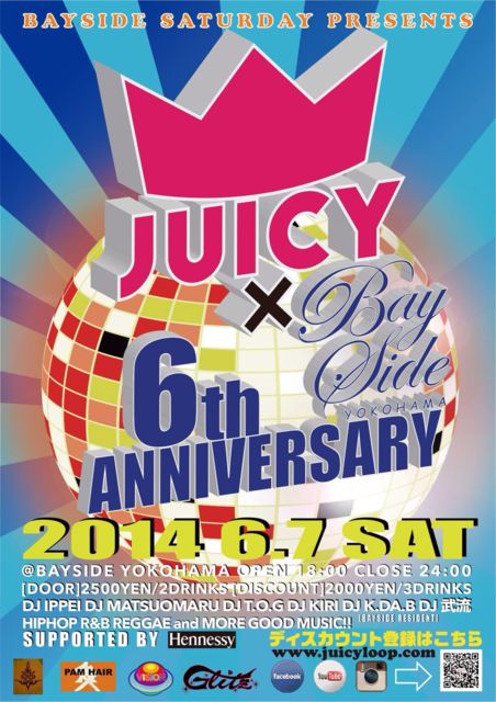 2014ǯ6·î!! ²£ÉÍbay¥¨¥ê¥¢ºÇÂç¤ÎCLUB ¡ØBaySide Yokohama¡Ù¤¬6¼þǯ¤ò·Þ¤¨¤Þ¤¹!!! Í褿¤ë6·î7Æü¤Ï!! ¡ØJUICYxBaySide Yokohama 6th ANNIVERSARY¡Ù¤Ï18:00¡Á24:00¤Î360ʬNonStop¤Ç¡¢ ¡Ø¤á¤Ã¤Á¤ã¢¬¢¬¢¬¡Ù¤ÊPartyStyle¤Ç¥Õ¥í¥¢¤òROCK¤µ¤»¤Á¤ã¤¤¤Þ¤¹!! ¤¼¤Ò¤³¤Î»þ´ÖÂӤǤÎJUICY¤ÊÀ¹¤ê¾å¤¬¤ê¤òÂ䶤·¤Æ²¼¤µ¤¤!! µ®Êý¤È¤Î³Ú¤·¤¤½Ð²ñ¤¤¤¬¡¢¤ª¼ò¤âDance¤ò²Ã®¤µ¤»¤Þ¤¹¤è¡Á¢ö º£²ó¤Ï¡¢FOOD¤ÎÈÎÇä¤â¼Â»Ü¤·¤Þ¤¹!! Open¤«¤éÁ´³«¤ÇÍ·¤ÓÈè¤ì¤Æ¤â¡¢¥¨¥Í¥ë¥®¡¼Êäµë½ÐÍè¤Þ¤¹¤è¡Á(¾Ð) ¡ùHennessy¥¥ã¥ó¥Ú¡¼¥ó¡ª³Æ¼ï1000±ß/ÇÕ¢ª500±ß/ÇÕ